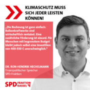 „Die konservative Jamaika-Koalition trifft Ausgaben in Millionenhöhe ohne klare Strategie und schränkt dadurch die Investitionsmöglichkeiten in kommunalen Klimaschutz und Energiewende ein. Leider offenbart sich hier erneut die mangelnde wirtschaftspolitische Kompetenz der Koalition. Dies lässt für die Zukunft Kassels nichts Gutes hoffen“, kritisiert Dr. Ron-Hendrik Hechelmann, Sprecher für Klima und Finanzen der SPD-Fraktion. Am 12.06.2023 hat die konservative Jamaika-Koalition in der Kasseler Stadtverordnetenversammlung eine Förderung von Balkonkraftwerken (kleine Photovoltaik-Anlagen für den Balkone) von 150 € pro Haushalt beschlossen.