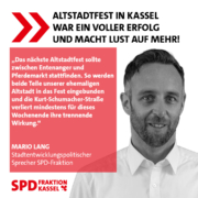 Mario Lang, Sprecher für Stadtentwicklung der SPD-Fraktion, regt in diesem Zusammenhang an: „Das nächste Altstadtfest sollte zwischen Entenanger und Pferdemarkt stattfinden. So werden beide Teile unserer ehemaligen Altstadt in das Fest eingebunden und die Kurt-Schumacher-Straße verliert mindestens für dieses Wochenende ihre trennende Wirkung.“